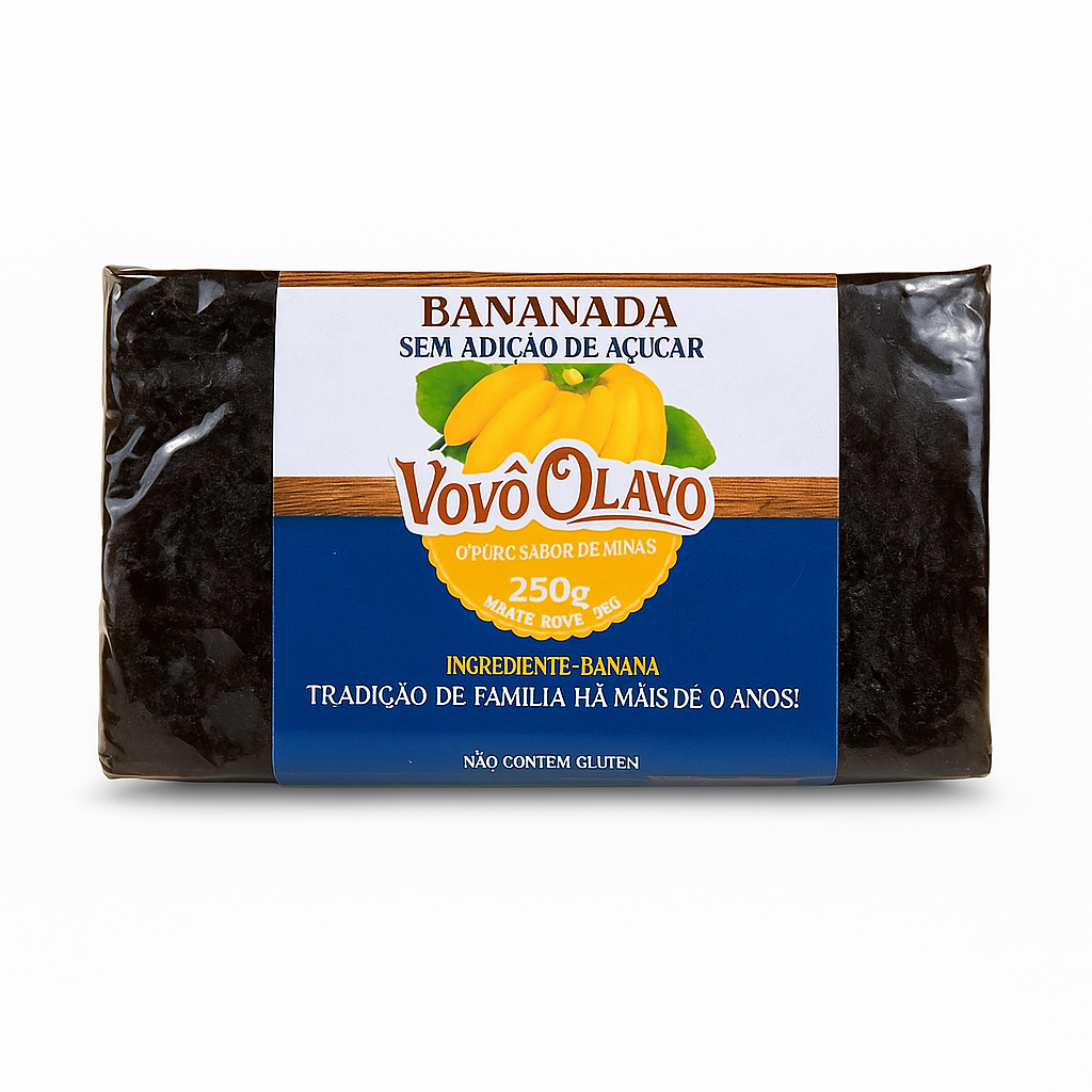 A Bananada Sem Açúcar Vovô Olavo 250g é feita com banana madura selecionada e sem adição de açúcar, mantendo o sabor autêntico e adocicado da fruta. Produzida artesanalmente em Ponte Nova – MG, segue a tradição de mais de 50 anos da família, com textura macia e sabor natural, ideal para quem busca uma opção saudável e energética.